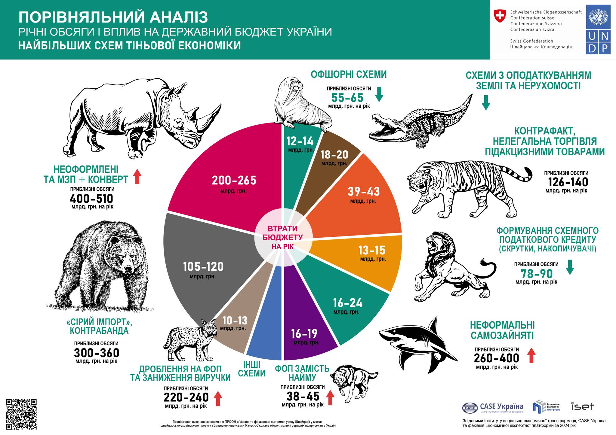 Нагадаємо, згідно із попереднім дослідженням (за 2023 рік) втрати від схем з ухилення від сплати податків складали 353,5-568 млрд грн на рік.